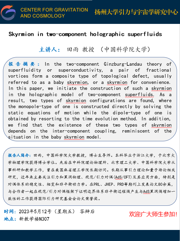 Skyrmion in two-component holographic superfluids