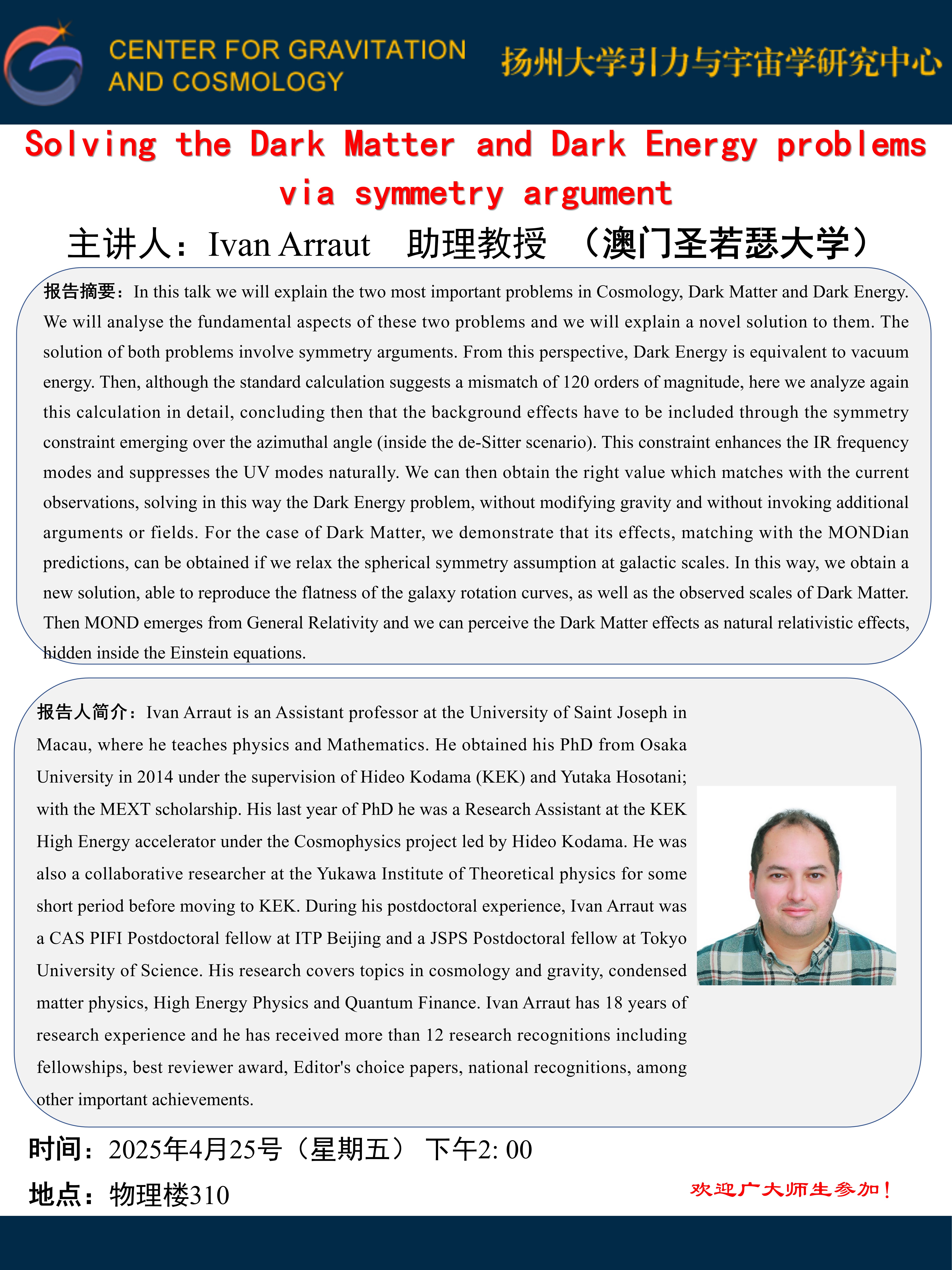 Solving the Dark Matter and Dark Energy problems via symmetry argument