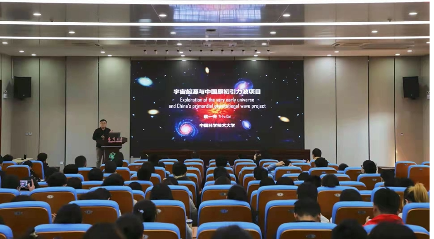 CGC invited Prof. Yi-Fu Cai from University Of Science And Technology Of China (USTC) to visit Yangzhou University on Nov 10, 2021. Prof. Yi-Fu Cai obtained his Ph.D. from USTC in 2010. He was the postdoc researcher in Arizona State University from Sep 2010 to Aug 2012, and in McGill University from Sep 2012 to May 2015. He came back to join USTC in 2015. In CGC he gave a public lecture named “Exploration of the very early universe and China’s primordial gravitational wave project”.