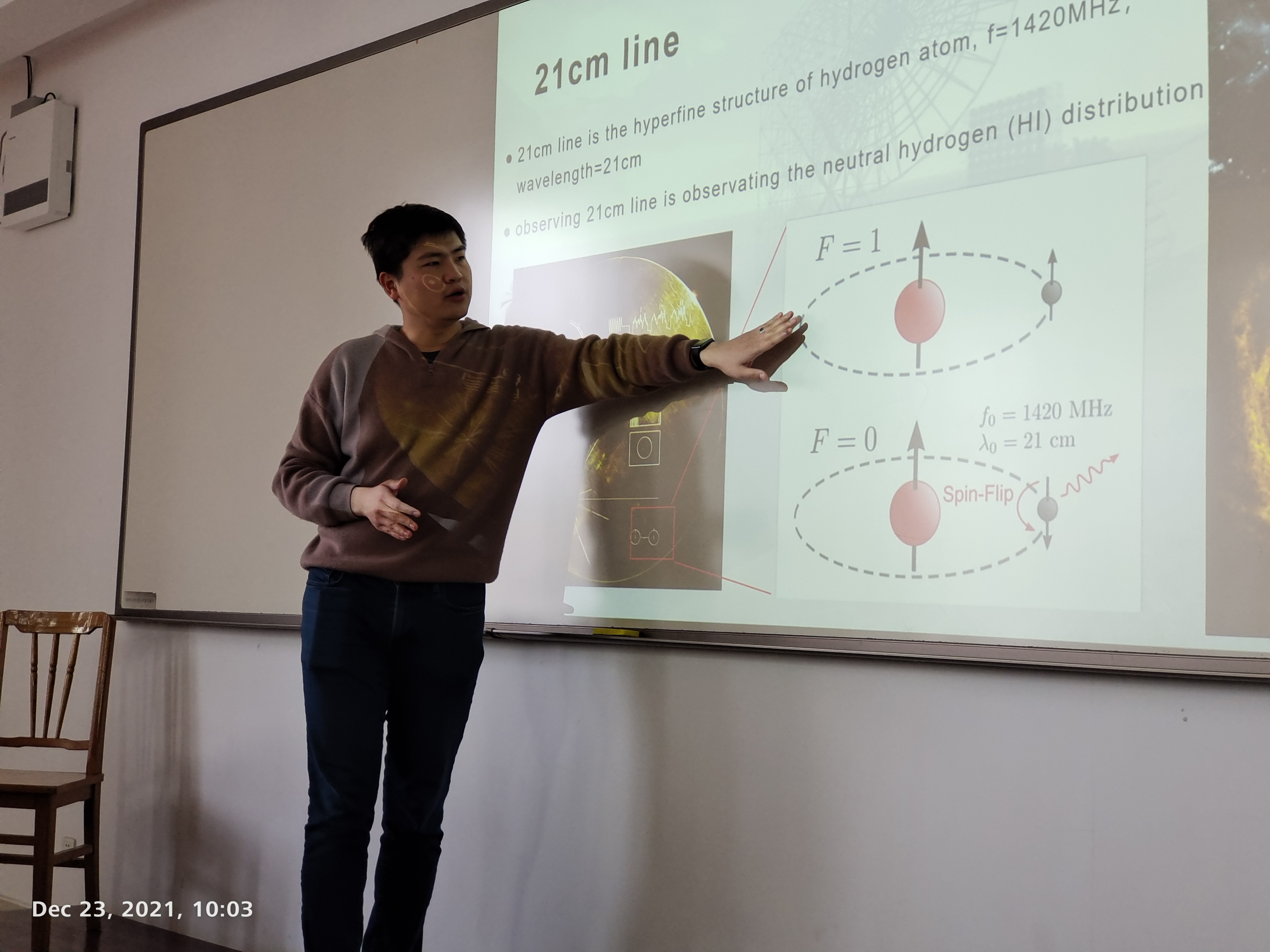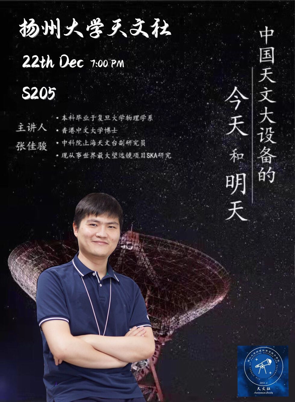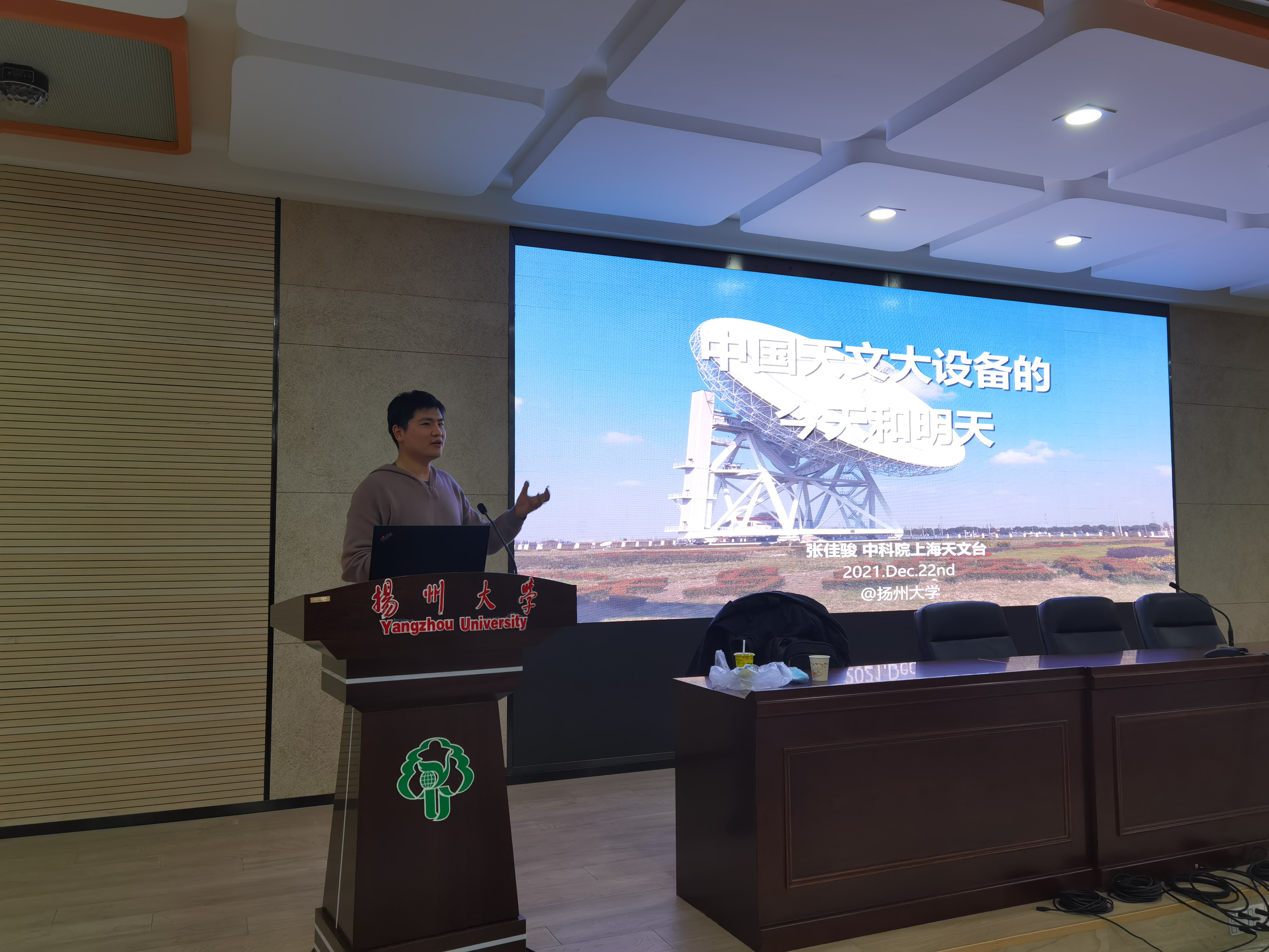 CGC invited Prof. Jia-Jun Zhang from Shanghai Astronomical Observatory, Chinese Academy of Sciences (SHAO, CAS)to visit Yangzhou University on Dec 22, 2021. Prof. Jia-Jun Zhang obtained his Ph.D. from Chinese University of Hong Kong in 2017. He was the postdoc researcher in Shanghai Jiaotong University from 2017 to 2019, and in IBS Center for Theoretical Physics of the Universe from 2019 to 2021. He came back to join SHAO in 2021. During his visit he delivered a public lecture named “Chinese Astronomical Facilities of Today and Tomorrow” and an academic seminar titled "21cm Intensity Mapping with BINGO".
